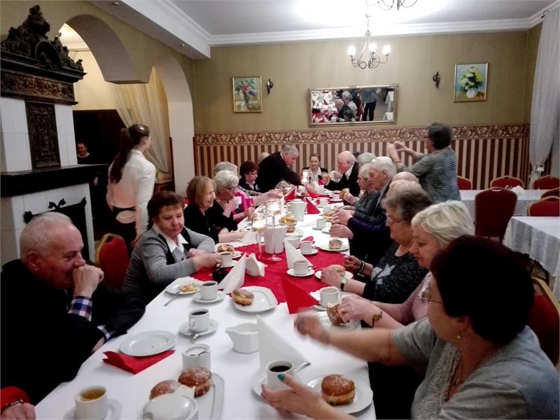 Dnia 24-02-2017 Koło Emerytów z Chociwla zorganizowało imprezę w „Pałacu nad Jeziorem”. Powodem spotkania był „TŁUSTY CZWARTEK”. Kto chce sobie zapewnić pomyślność na resztę roku, powinien w tym dniu zjeść chociaż jednego pączka. Tak więc przy wspólnym stole chętnie spożywaliśmy pączki, jak też chrusty – także związane z tym dniem. Przy kominku w miłej atmosferze czas płynął szybko. Opowiadaliśmy okolicznościowe dowcipy, rozmaite historyjki, śpiewaliśmy piosenki biesiadne. Cieszymy się, że nasi członkowie coraz częściej chcą spotykać się na rozmaitych imprezach. Rosnące zainteresowanie wspólnie spędzonym czasem jest tak duże, iż będziemy kontynuować takie spotkania, gdyż dzięki nim coraz lepiej integruje się nasze środowisko.