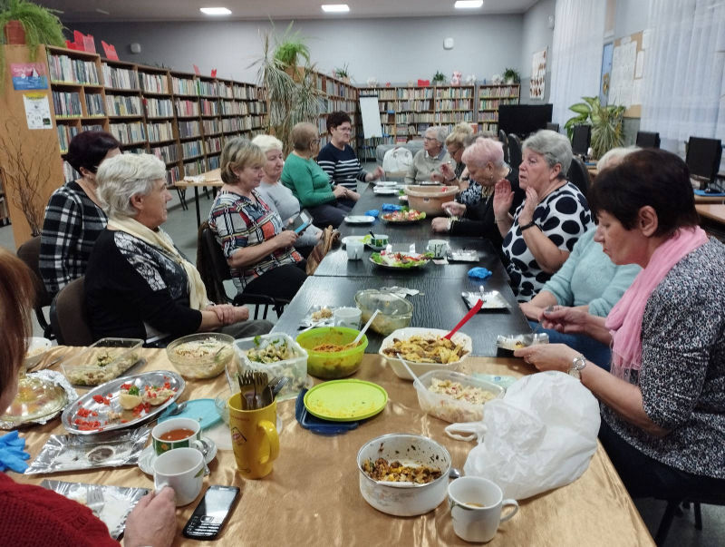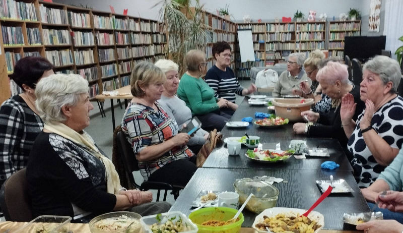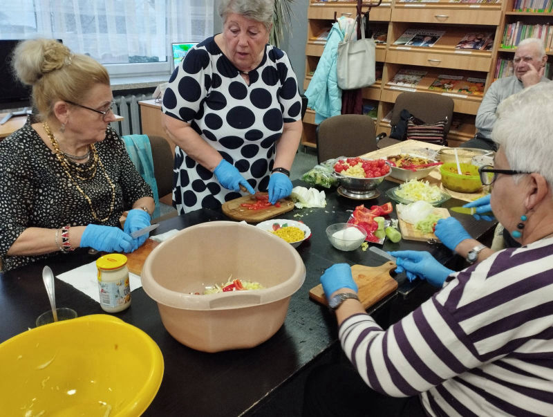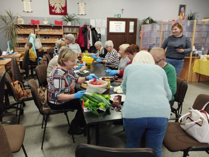 15.11.2022r (wtorek) w Miejsko-Gminnej Bibliotece Publicznej w Chociwlu odbyły się warsztaty edukacyjno-kulinarne dla mieszkańców pod hasłem ,,Zdrowy Senior”. Na początku spotkania przedstawiona została, w bardzo interesujący i przystępny sposób, prezentacja multimedialna, zawierająca zasady zdrowego żywienia oraz wpływ racjonalnej diety na zdrowie starszych osób. W części kulinarnej uczestnicy warsztatów uczyli się, jak przygotować proste, zdrowe i niedrogie posiłki.